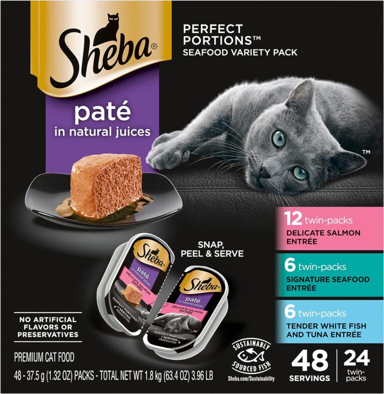 7 VIDEOS SHEBA PERFECT PORTIONS Paté Adult Wet Cat Food Trays (24 Count, 48 Servings), Signature Seafood Entrée, Easy Peel Twin-Pack Trays