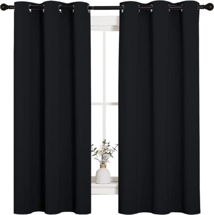 NICETOWN Halloween Pitch Black Solid Thermal Insulated Grommet Blackout Curtains/Drapes for Bedroom Window (2 Panels, 42 inches Wide by 63 inches Long, Black)